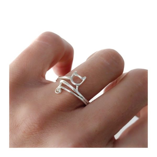 Anillo de plata sencillo con forma de gato. Llévalo y mantén su amor siempre cerca, un recordatorio dulce y tierno de la huella que dejan en nuestros corazones. Cuando ellos quieren…..