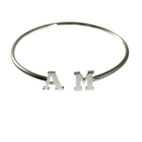 Pulsera de plata de ley rígida, abierta y adaptable con las iniciales que quieras. Dos siempre es mejor que uno….
