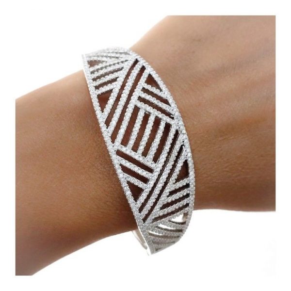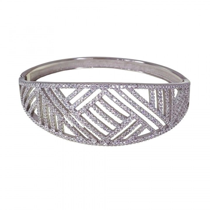 Brazalete de plata de ley rodiado con circonitas microengastadas. Fabricación artesanal.