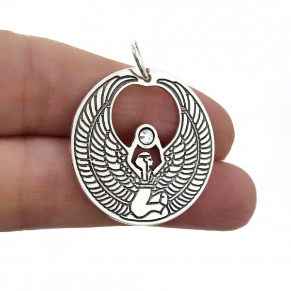 Este colgante en forma de diosa Isis captura la belleza y la magia de la antigua mitología egipcia. Las delicadas alas de Isis simbolizan su poder y gracia divina, haciendo de este colgante un tributo atemporal a la feminidad y la fuerza.