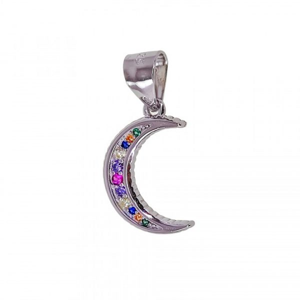 Este colgante con forma de luna, decorado con circonitas blancas o de colores. Añade un toque de encanto y elegancia a tu estilo al combinarlo con tu cadena favorita. Un accesorio perfecto para brillar en cualquier ocasión.