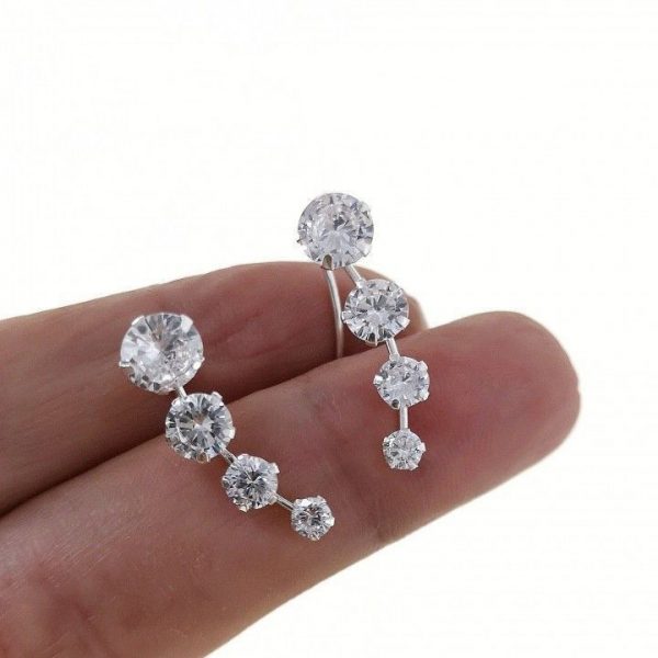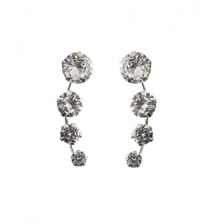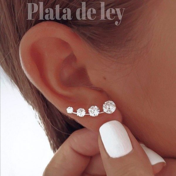 Pendientes de plata trepadores de 2,3 cm con circonitas de varios tamaños.