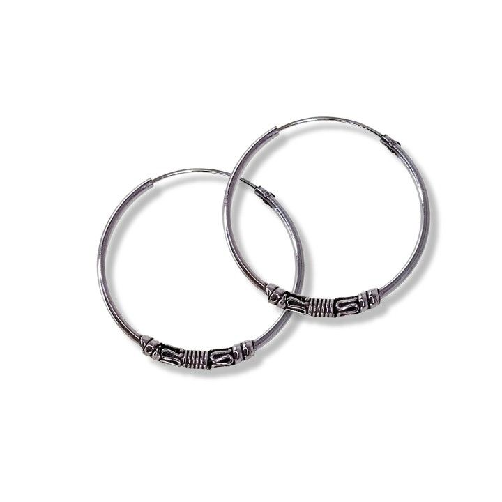 Completa tu estilo bohemio con estos pendientes de plata para hombre estilo Aro Bali. Con un grosor de 1.2 mm y un diámetro interior de 25 mm, estos pendientes aportan un toque de elegancia y espíritu libre a tu atuendo diario. Añade un accesorio que refleje tu personalidad única y complementa tu look con un detalle distintivo.