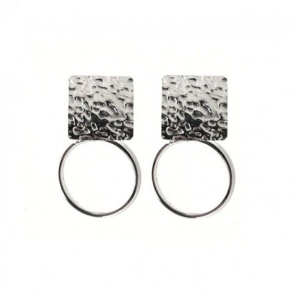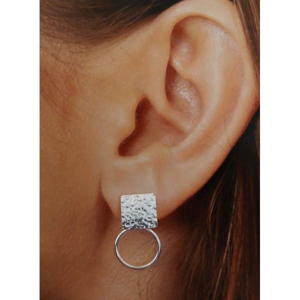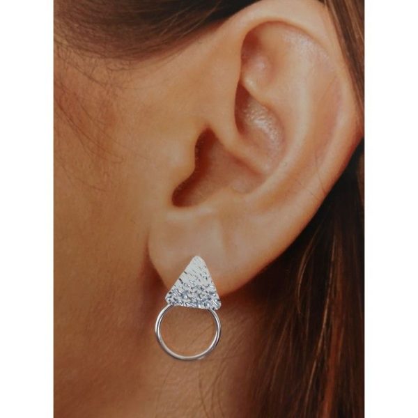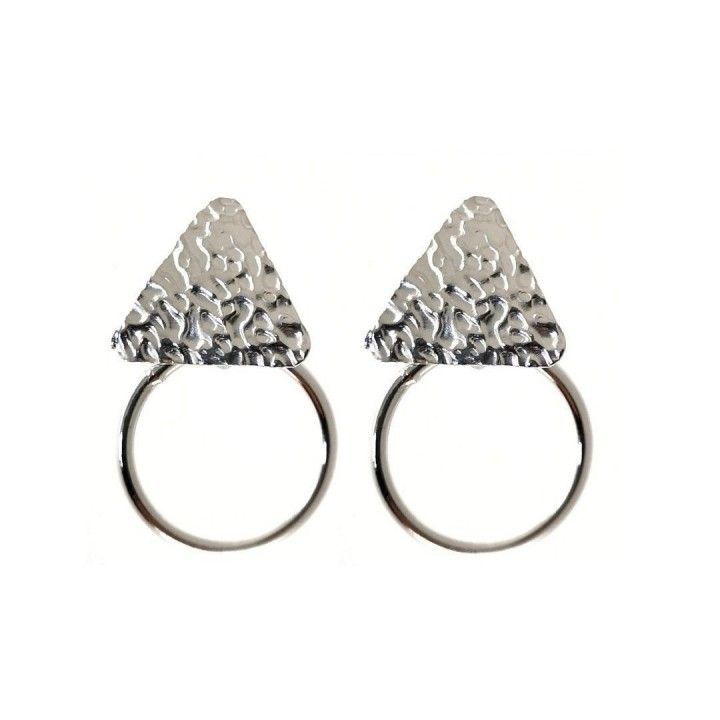 Pendientes de plata de ley de diseño espectacular. Llamativo pero no muy grande. Elegante pero informal. La pieza que necesitas para destacar pero no tanto. Con aros de 1,4 cm de diametro y triangulo o cuadrado de 1x1cm.