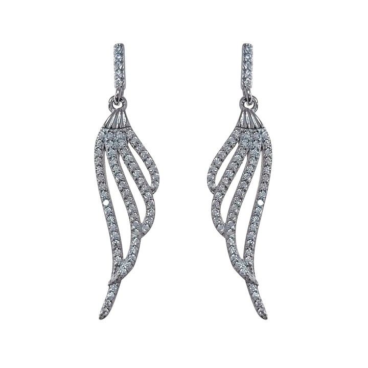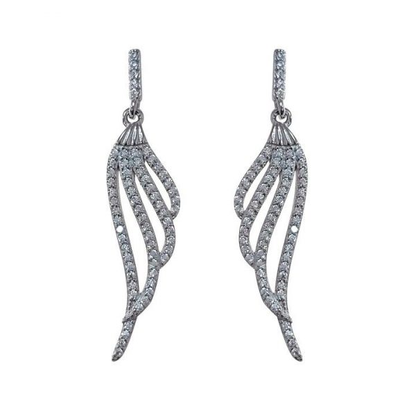 Pendientes de plata de ley rodiada con forma de alas y circonitas engastadas. Brillarás como los ángeles.