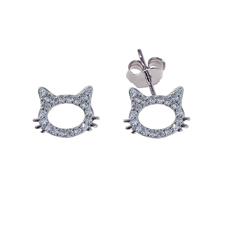 Pendientes de plata de ley con forma de cabeza de gato y circonitas. Miaaauuu