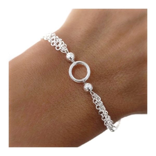 Pulsera de plata de ley con doble cadena. Es la joya perfecta para el día a día y para la noche..