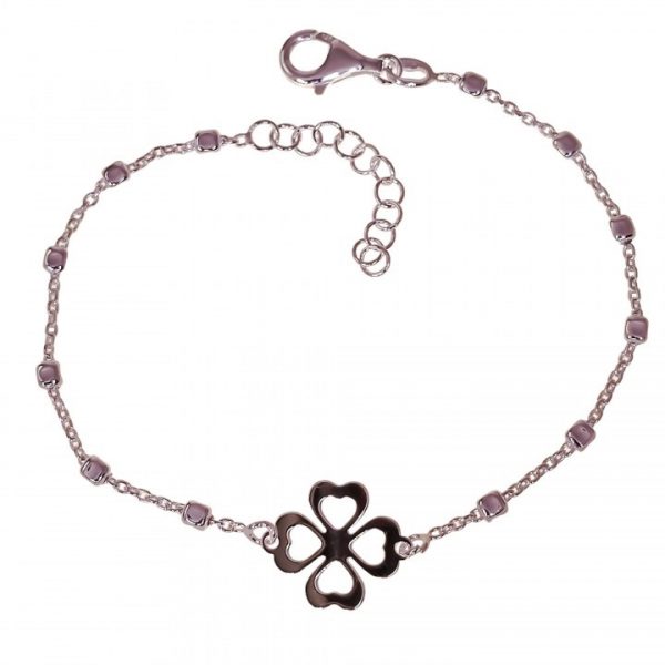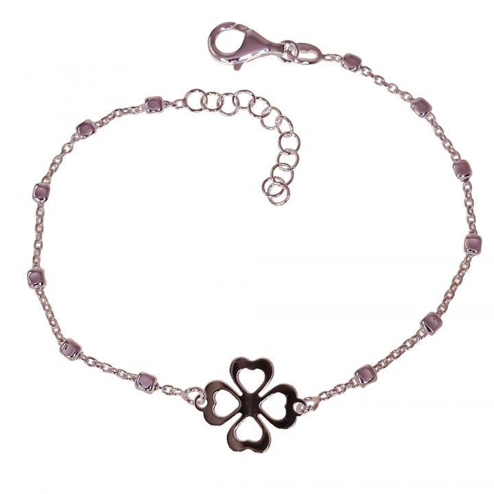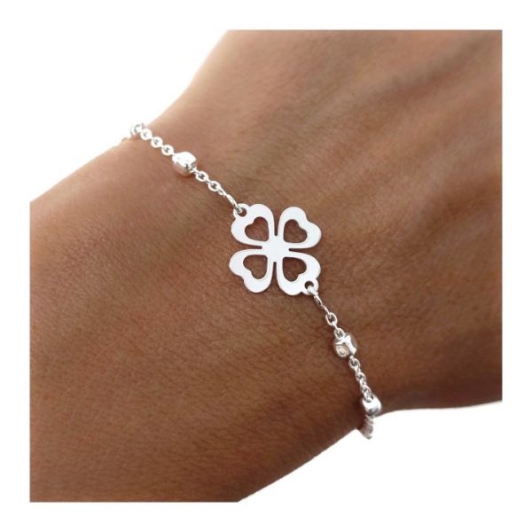 Pulsera plata de cadena reforzada con forma de trébol. ¡Dicen que da suerte!
